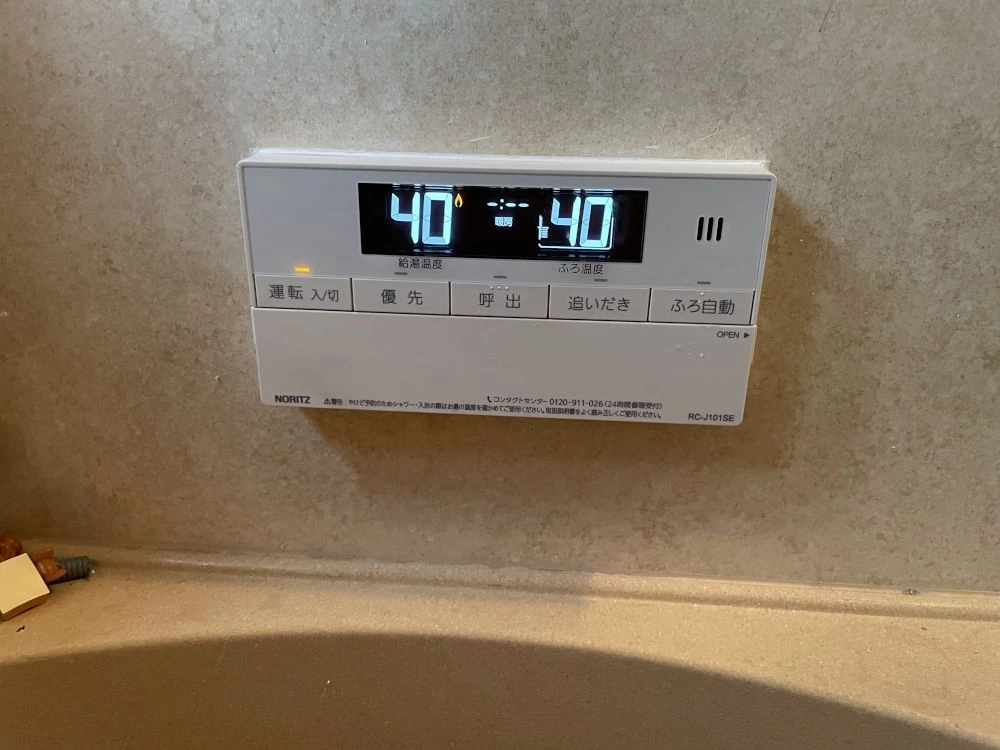 新しい給湯器はノーリツの「エコジョーズ」24号、床暖房にも使用できるタイプです。エコジョーズなら省エネルギーでガス代の節約になるので、床暖房を使用する冬場も光熱費を抑えることができます。