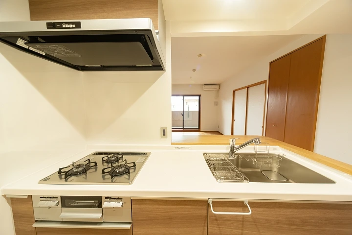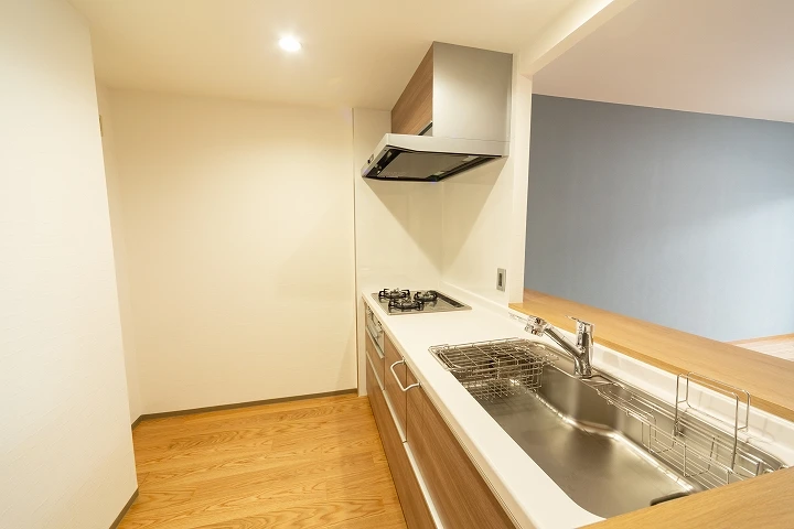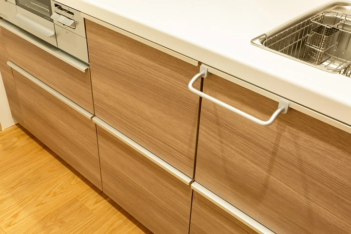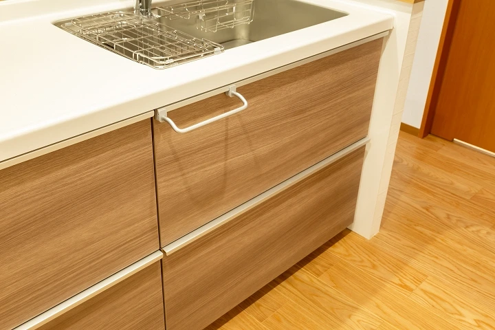 TOTOのスタンダードキッチン「ミッテ」へのリフォームになります。掃除がしやすいレンジフード「スーパークリーンフード」が採用されているほか、引き出しもよく使うものが取り出しやすいように、使いやすい設計がされております。