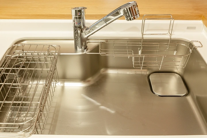 水がスムーズに流れる「ステンレスすべり台シンク」