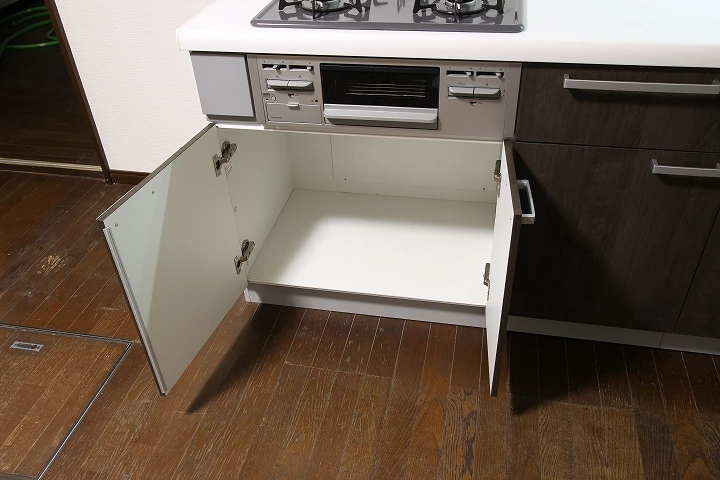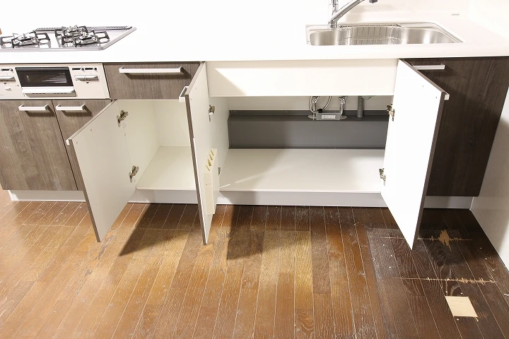 費用を抑えるために、収納は開き戸にしました。引き出しタイプに比べて3~5万円ほど費用を抑えることができます。