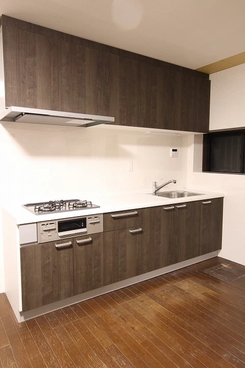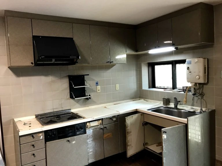 収益物件のキッチンリフォーム事例になります。費用を抑えるために、クリナップのラクエラを採用。ホーローコンロ、開き戸にして費用を抑えました。
