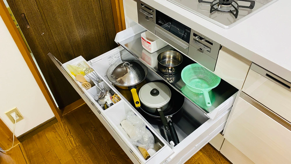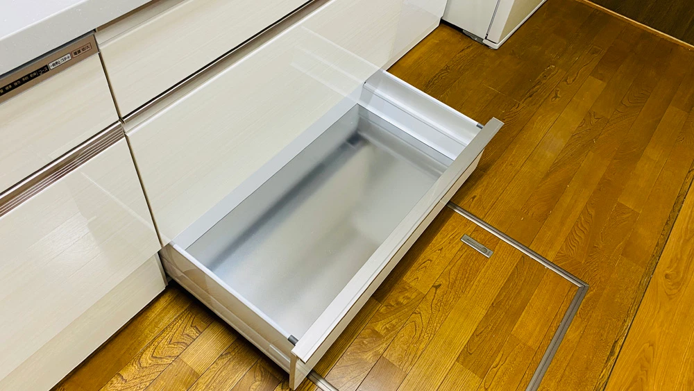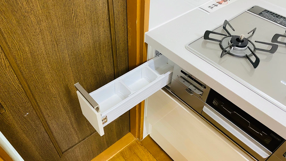 作業しやすいよう進化し続けるキッチンは、手入れのしやすさだけでなく、収納力も従来のものと比べて格段にアップしています。リクシルのキッチン「リシェルSI」は油汚れも手入れしやすいよう工夫された素材を採用し、水をこぼしてもストップする「水返し形状」と、こだわりポイントが日々の家事負担を軽減します。
