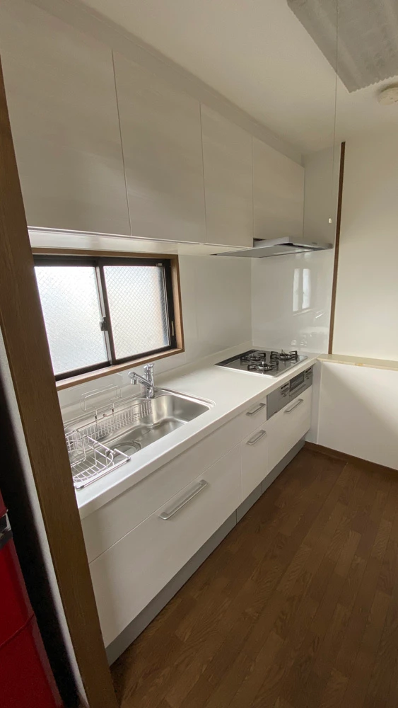 | 主なリフォーム内容 | システムキッチンは、リクシル「シエラ」幅195㎝ ※コンロはガラストップコンロ |