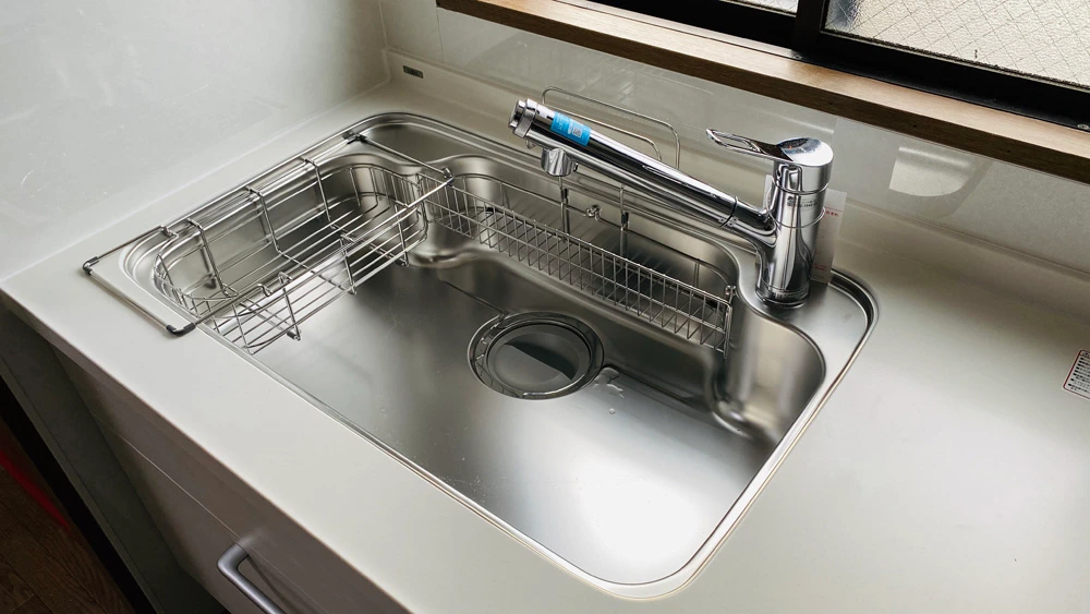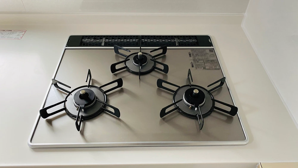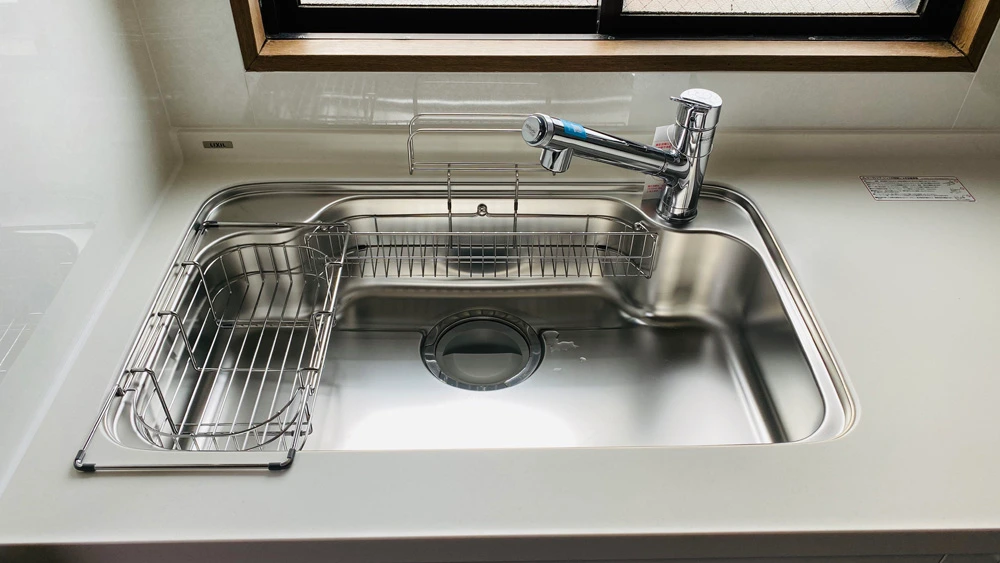 間口の同じシステムキッチンでも、最近のものは収納力が格段にアップしています。リクシル「シエラ」は、収納力アップと取り出しやすさに工夫が凝らされ、さらに、吊り戸棚とキッチン本体部分の素材を合わせることで、キッチンがよりすっきり広く見えます。手入れしやすい壁面は光沢仕上げで、使いやすく明るいキッチンに。一番汚れやすいコンロはガラストップで、たった一拭きできれいに汚れが取れるようになりました。