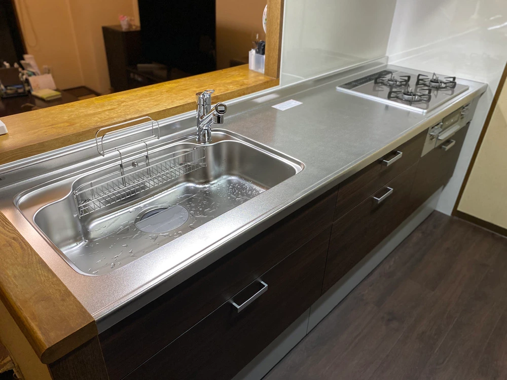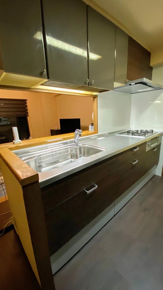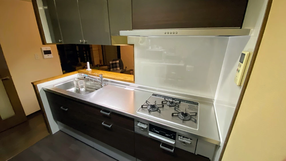 | 主なリフォーム内容 | キッチンは、リクシル「シエラ」幅240㎝ ※吊り戸棚再利用(一旦取り外し、再度取り付け) ※コンロはガラストップ |