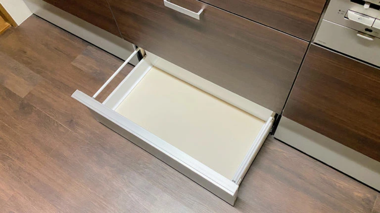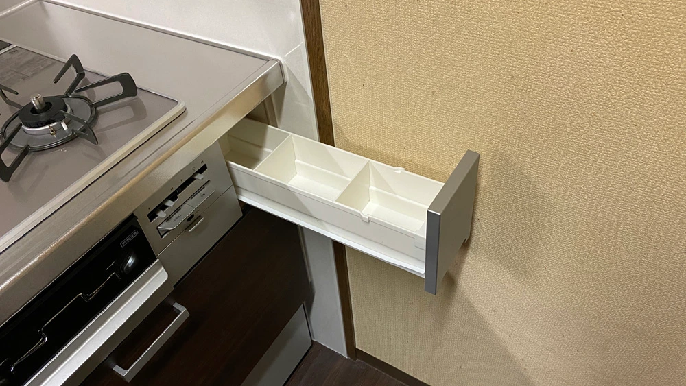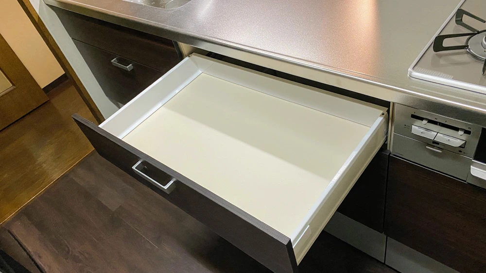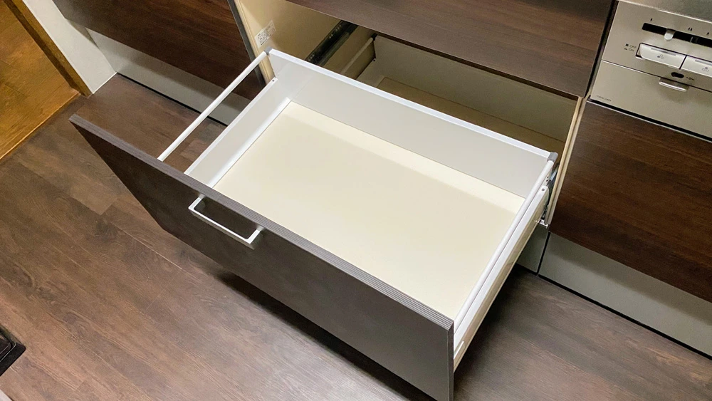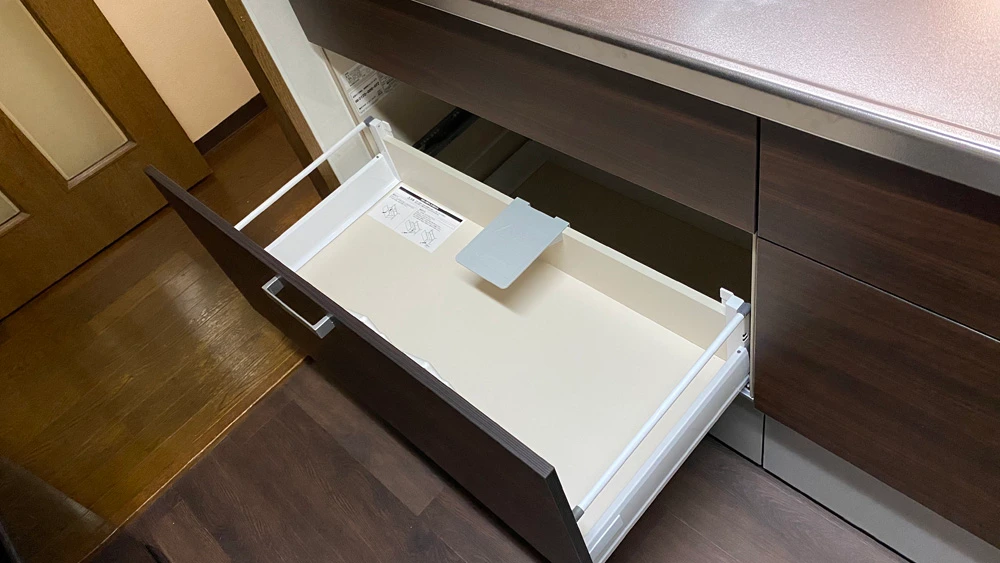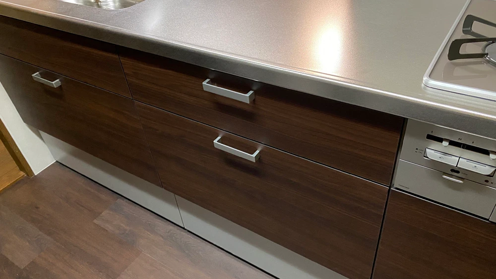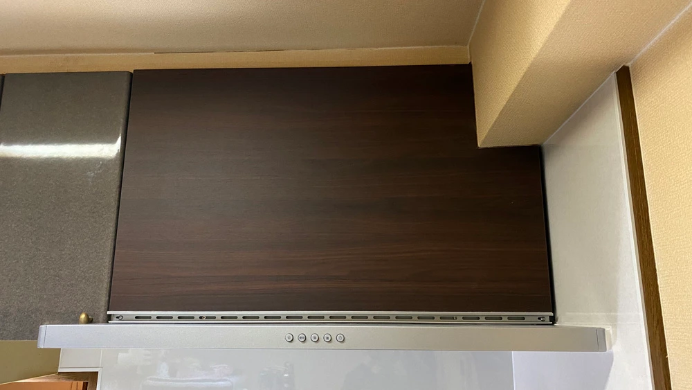 今回、吊り戸は再利用することで費用を抑えました。ただし、解体時に取り外し、キッチンパネルを張ってから付け直すことで、きれいに仕上げることができました。