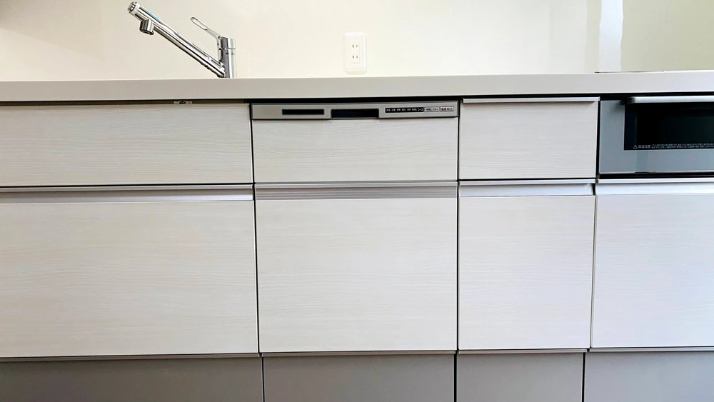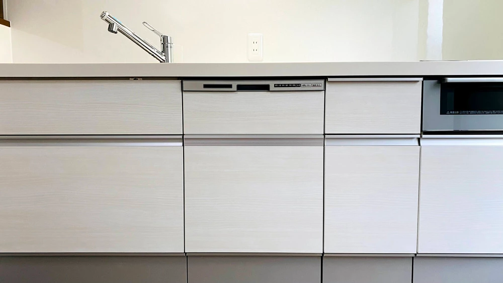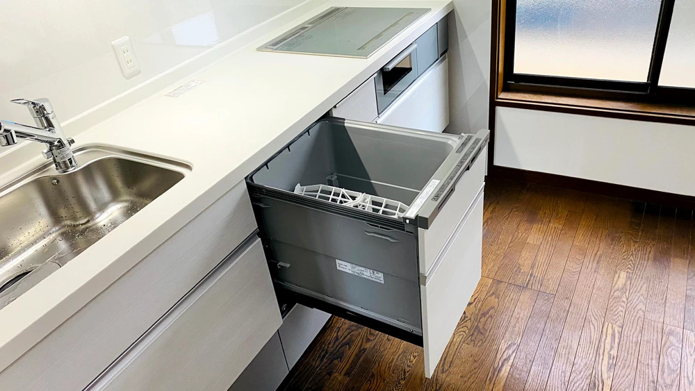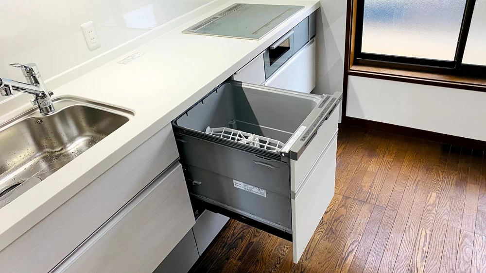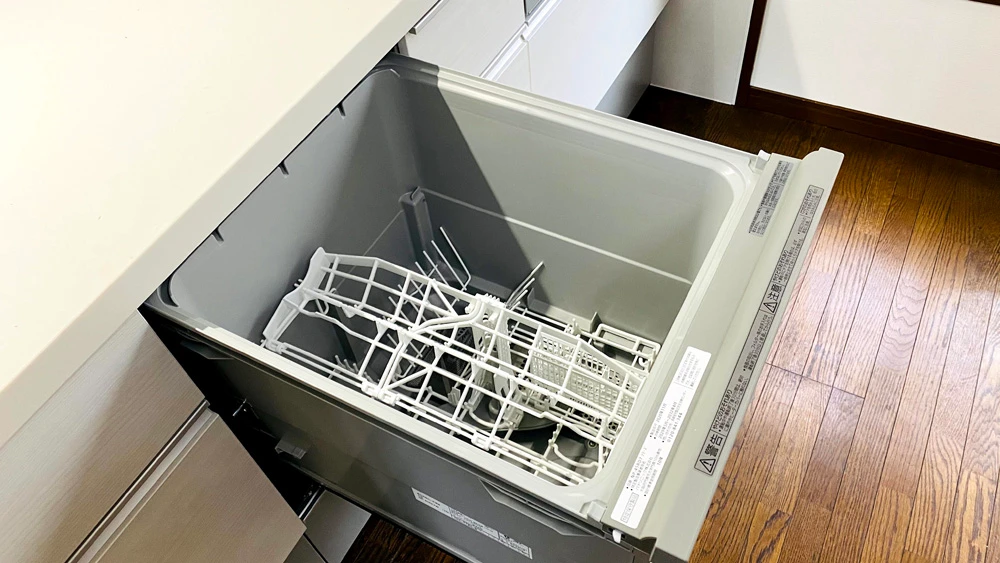 食洗機は家族が多くても使いやすい深型のものにしました。浅型のものより10㎝ほど深く、大皿でも入れることができます。なお、食洗機を設置するために、分電盤から専用線を引く工事もしました。