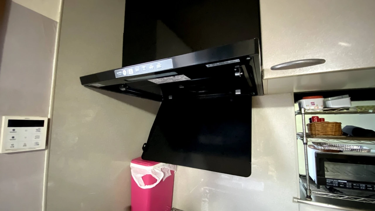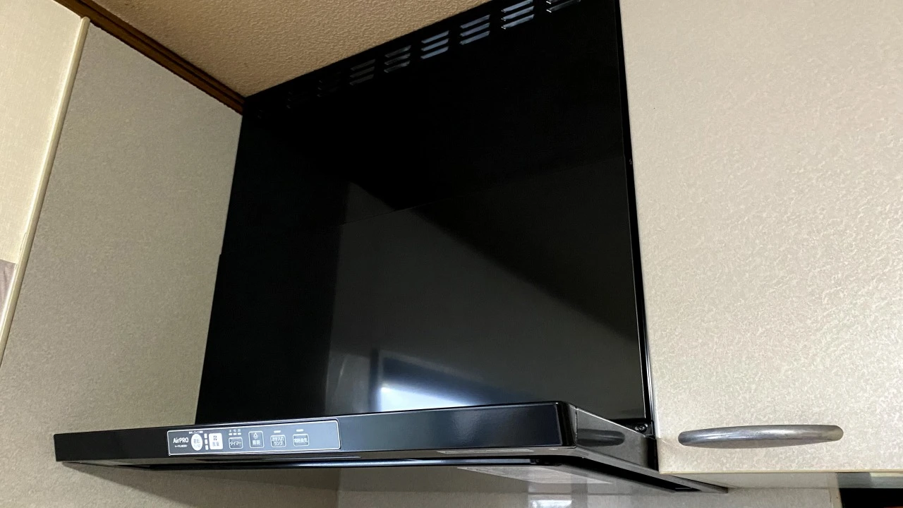 古いレンジフードをノンフィルター・ワンタッチ着脱ファンタイプのリンナイTLRシリーズに交換した事例です。