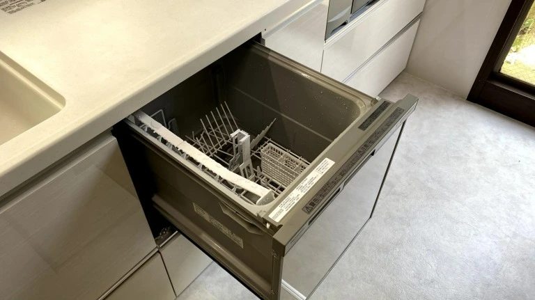 据え置きタイプの食洗機をビルトインにし、調理スペースを確保して見た目もすっきりしています。