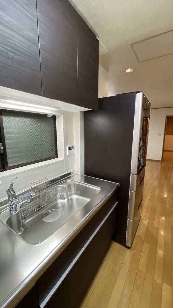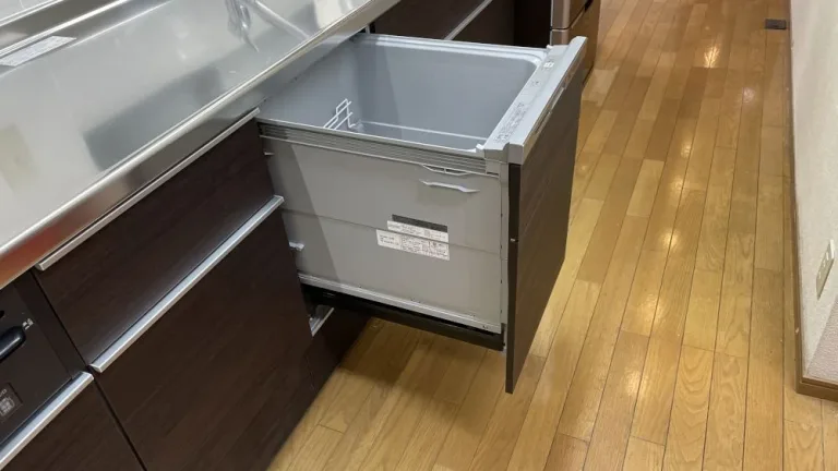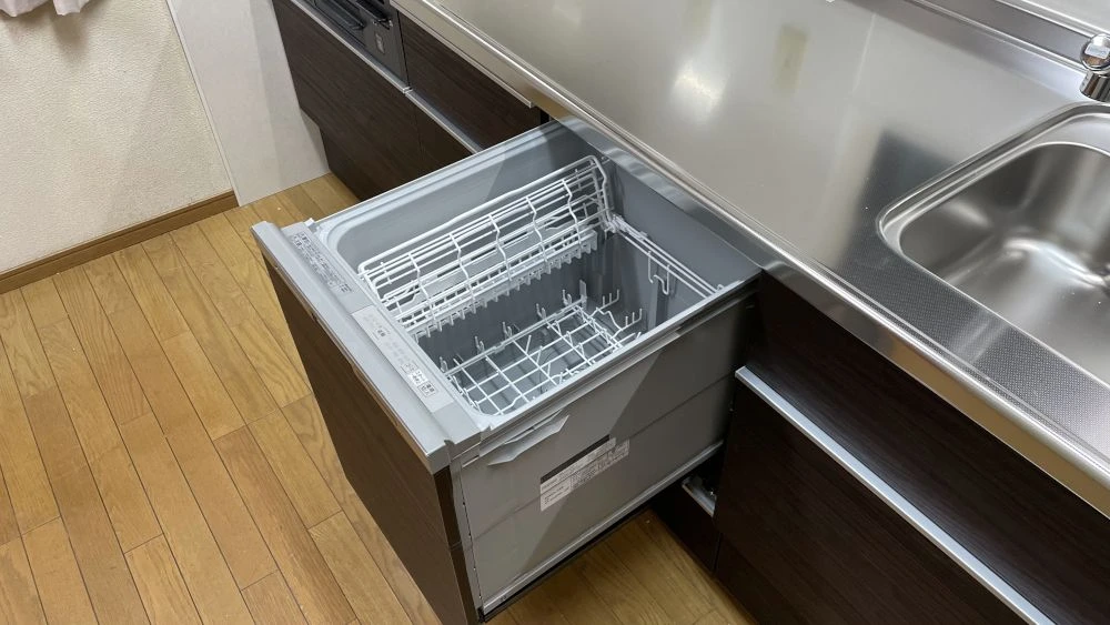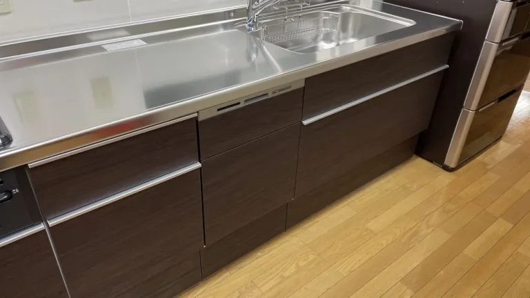 シンク横のカップボードを撤去したので冷蔵庫をキッチン真横に置けるようになり、調理がしやすくなりました。家族ぶんの食器を一度に洗える深型の食洗器も新設し、使い勝手の良いキッチンになったとお喜びいただいています。