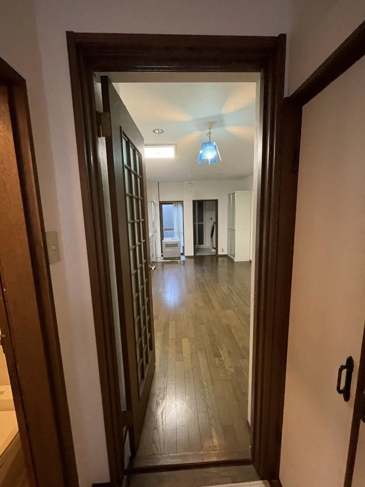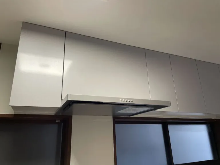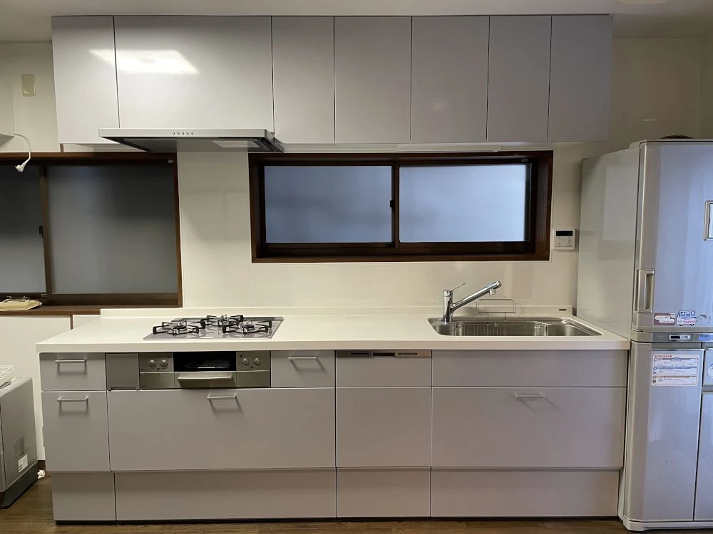 N様邸では、清潔感があり居室の雰囲気を明るくするホワイト系の扉カラーを選択されました。撥油・撥水加工のある光沢タイプの扉で、お手入れも楽に行っていただけます。