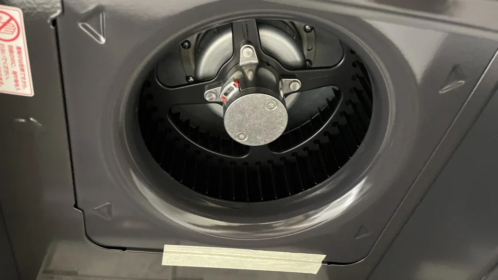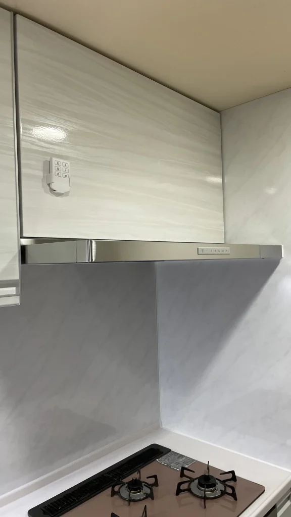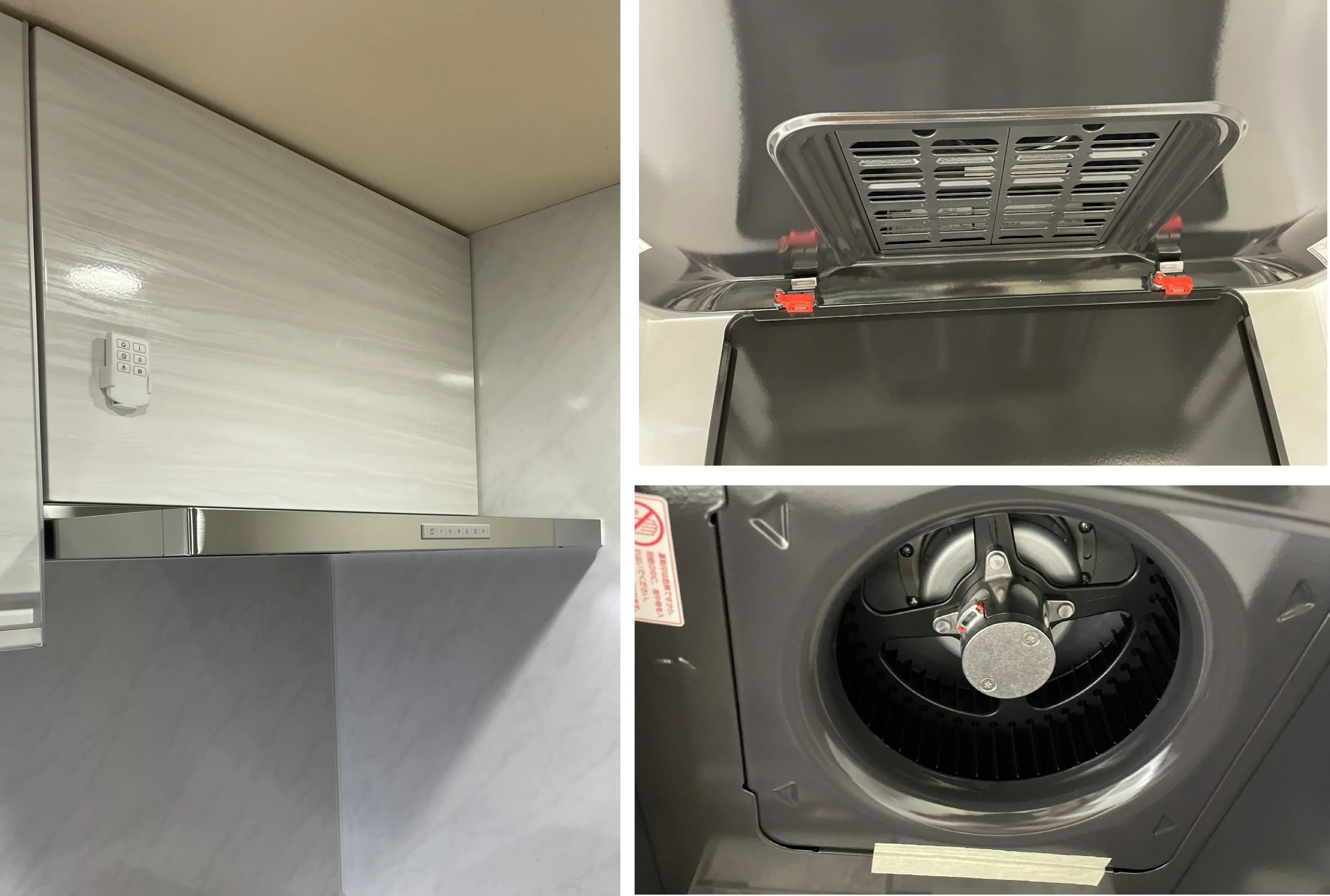 整流板から内部のシロッコファンまでホーロー製のレンジフードです。