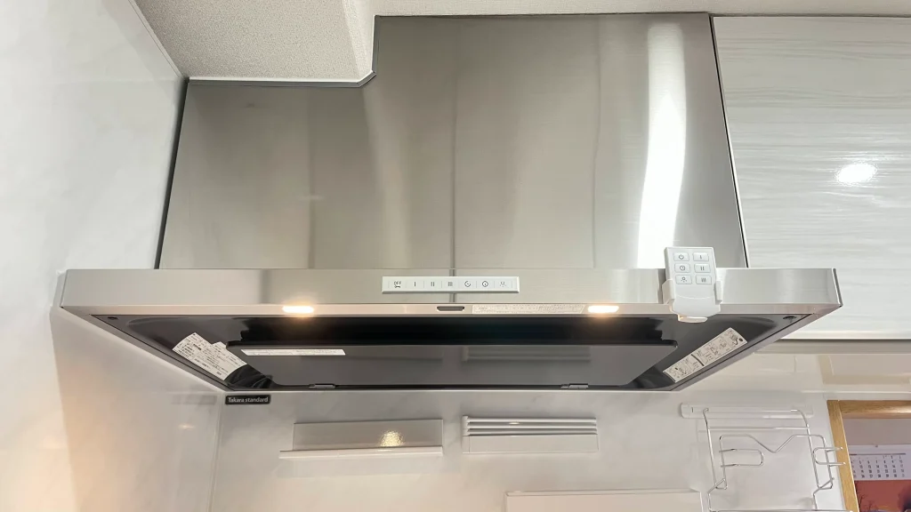 カップボードも同じくタカラスタンダード「トレーシア」で揃え統一感ある仕上がりに。ホーロー製のシンクやレンジフードは丈夫で長持ち、汚れが付きにくく落としやすいのが最大の特徴です。