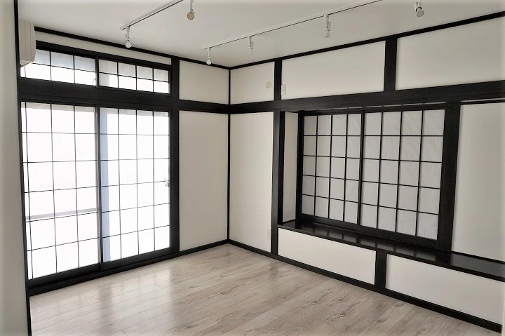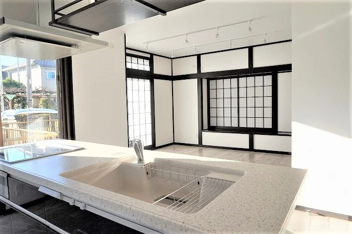 和室をリビングに取り込んで広々としたLDKにしました。障子をあえて残したままにすることで、和モダンな雰囲気を出しています。障子はカーテンと違い、光を優しく部屋に届けるので、小さなお子様がいるお宅にもおすすめです。