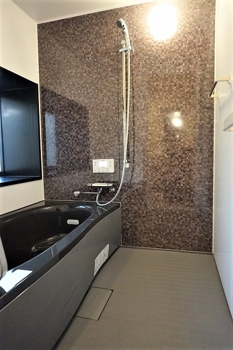 お風呂と洗面所は毎日使う場所ですから広々とした空間に改修しました。家全体のデザインを統一するために浴槽を黒にしています。掃除がしやすいように、壁面に凹凸の少ないタイプのユニットバスを採用しました。