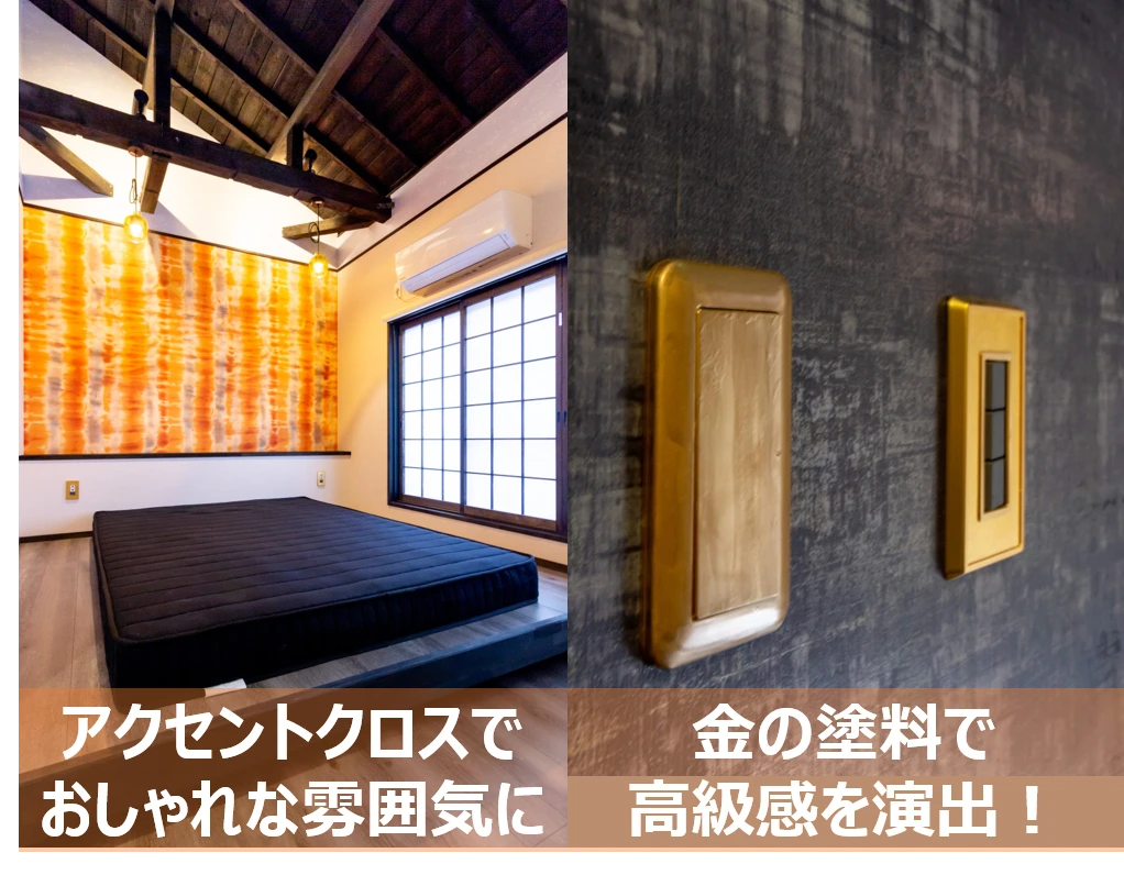 今回は、ワンポイントでアクセントクロスを取り入れたほか、ワンポイントの塗装により、雰囲気を一気に変えることに成功しました。