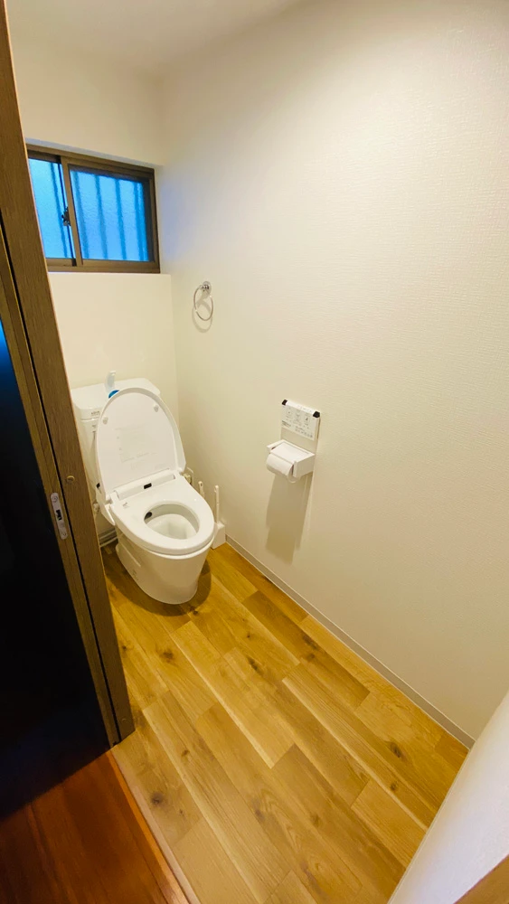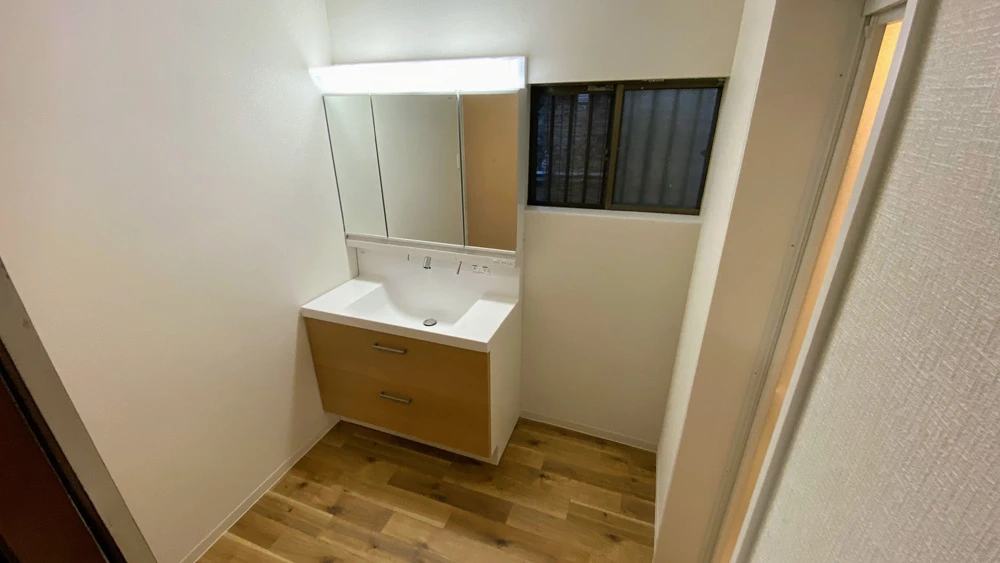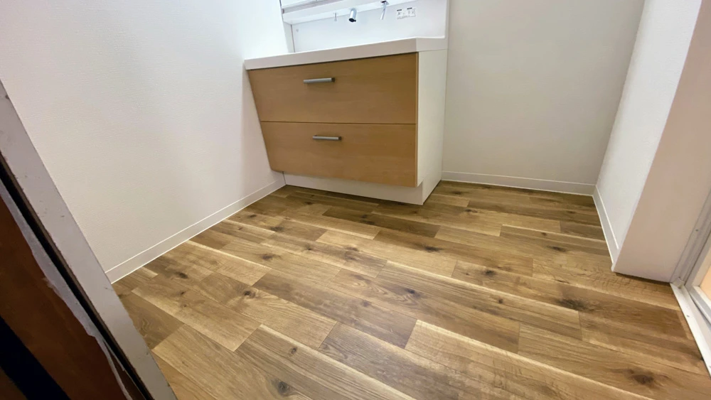 また、個室が2つあったお手洗いを個室一室へと間取り変更したり、タイル張だった浴室をユニットバスへ、壁面にやはりタイルが施されていた洗面脱衣所をクロス張りにするなどの内装工事も行いました。