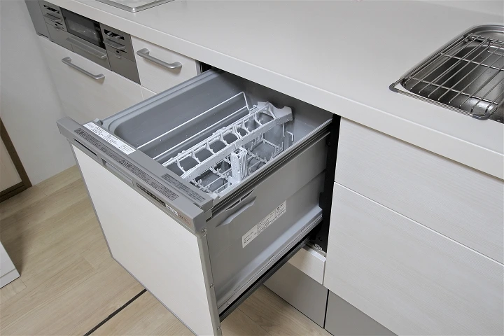 時短家事には、食洗機はマストアイテムです。据え置き型の食洗機と違って、ビルトインタイプの食洗機はキャビンにスッキリ収まってインテリアの邪魔をしません。洗浄パワーもバッチリです。