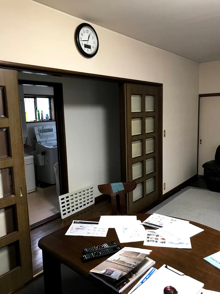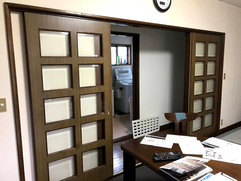 建具は部屋のイメージの決め手となる部分です。同じ木目調でも、古臭さを感じさせるプリントと、今っぽさあるプリントでは大きく部屋の雰囲気が変わります。今回は、立て付けの悪くなっていた引き戸の敷居を無くし、バリアフリー化も。