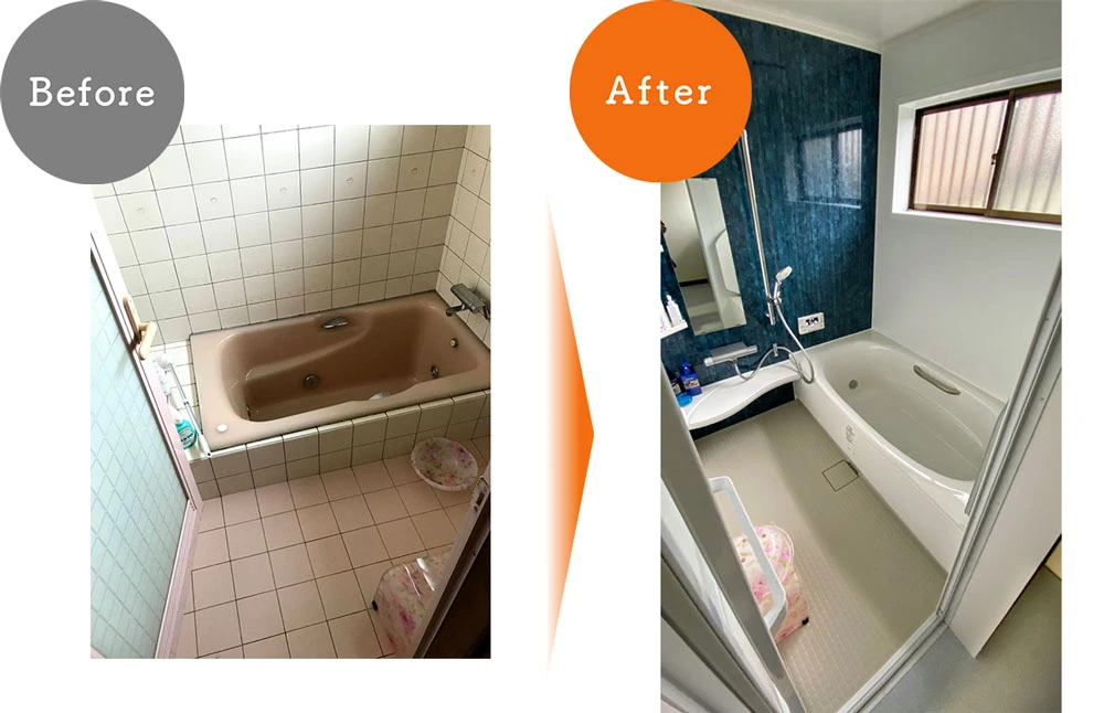 タイル張りは経年劣化が目立ちやすく、また、冷たいタイルに足がひやっとすることや、水はけの悪さ等悩みの種でした。今回のリフォームでは在来工法からユニットバスに切り替え、お手入れのしやすさや断熱性がアップ。断然快適になった浴室にご満足おただけました。