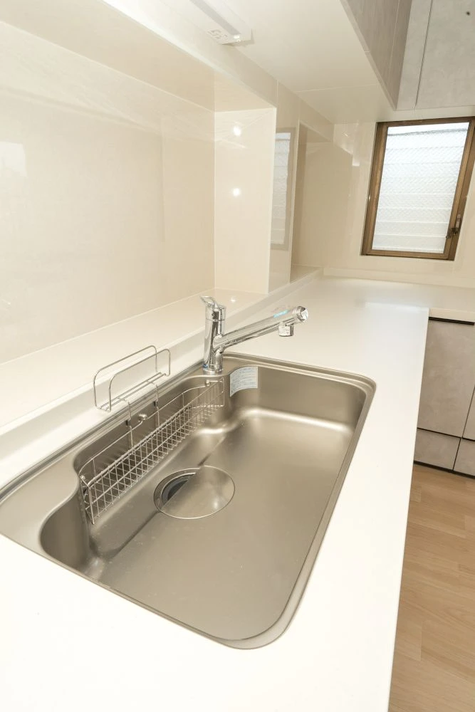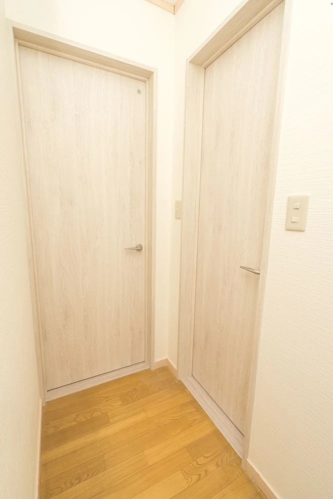 お風呂・トイレ・キッチンの水回りは人が使った形跡があると気になるもの。すべて交換したことで気持ちよく新生活をスタートさせられます。もともと窓が多く明るいお部屋でしたが、壁や床を明るい色にして一層明るく爽やかな印象です。さらに建具もすべて内装の基調カラーに合わせて交換し、まるで新築のお部屋のように生まれ変わりました。新しい建具は軽く、開け閉めがスムーズな点もご好評をいただいています。