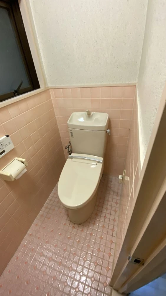 タイル張りの壁が時代を感じさせていたトイレは、タイルの上から薄いベニヤを上張りし、クロスを張り替えました。タイルの壁を壊すよりも早く、きれいなリフォームができます。