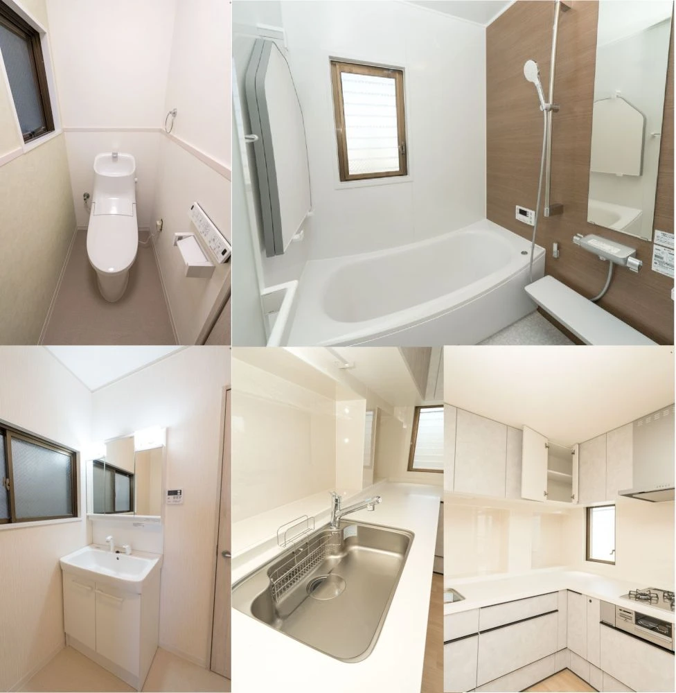 人が使った形跡があると気になる水回りをすべて一新。気持ちよく新生活をスタートさせられますね。カラーリングも全体で統一感を持たせています。