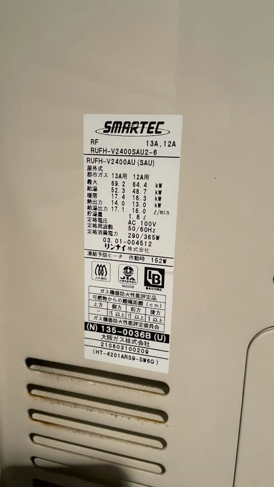 床暖房に対応しているガス給湯器に交換しました。扉付きで安心です。
