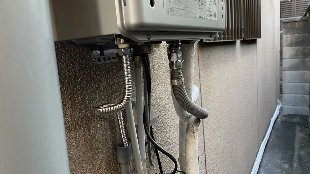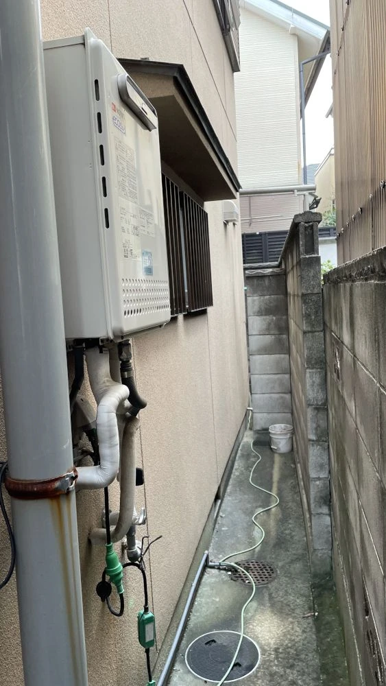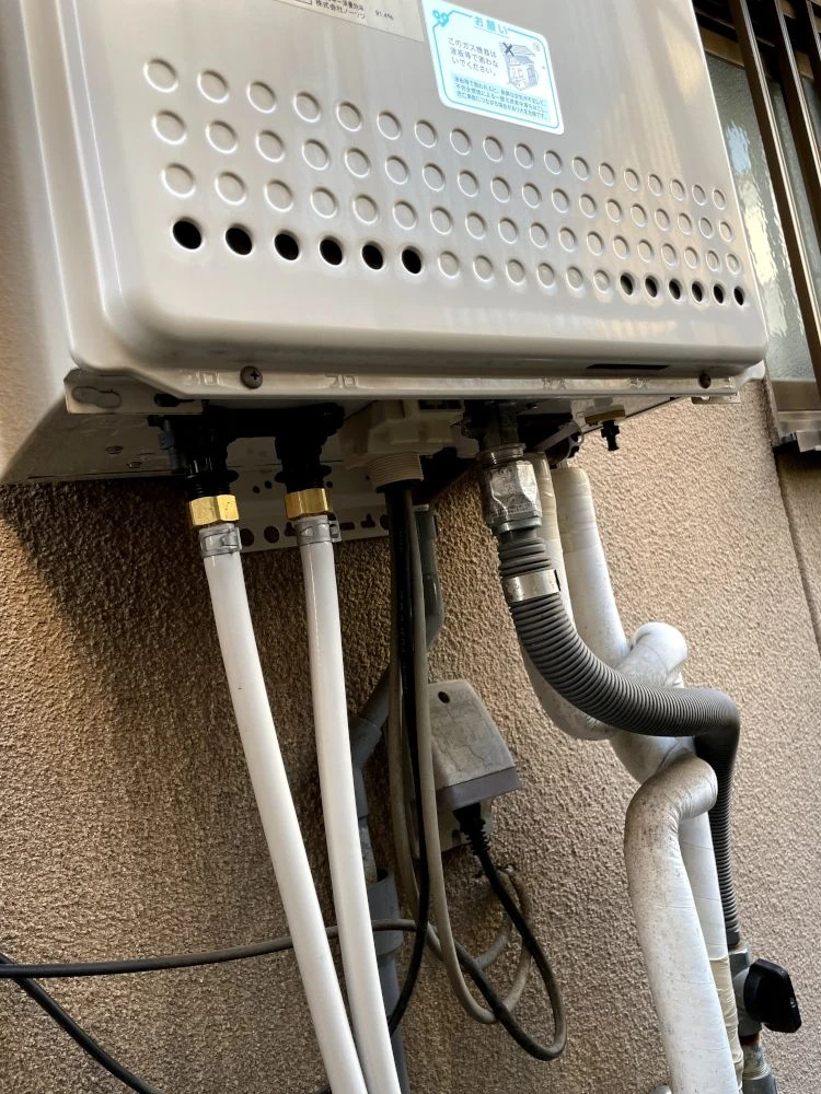戸建てのお風呂リフォームに伴い、古い給湯器をエコジョーズタイプの給湯器に交換した事例です。