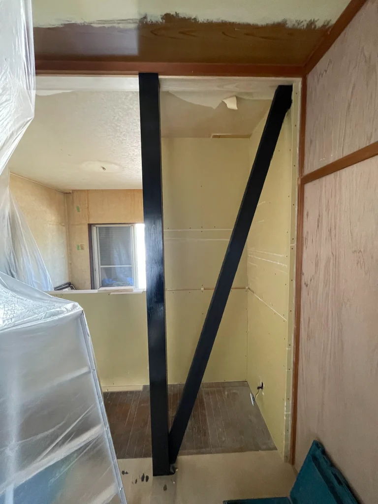 強度維持の観点から筋交いだけを残し、壁は撤去。ひと続きのLDKになりました。