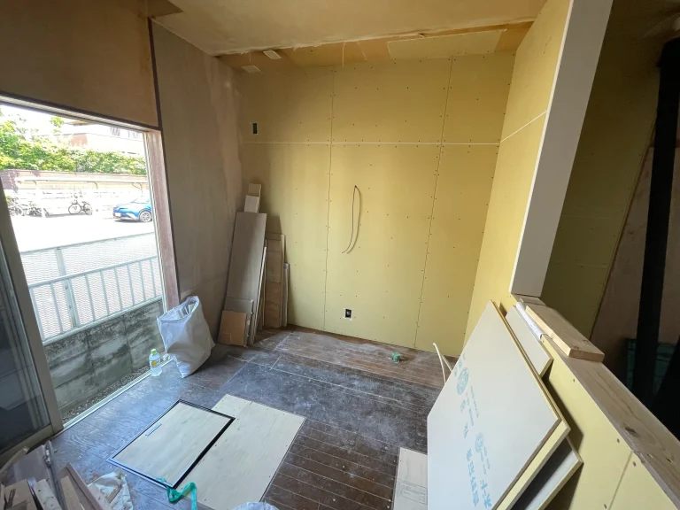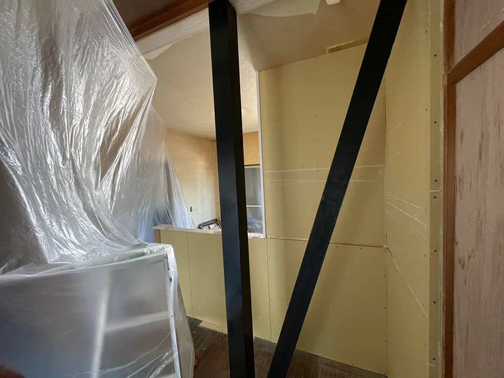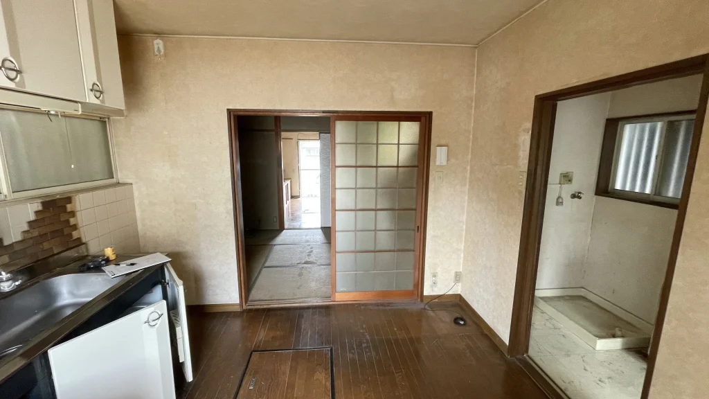キッチンと居間だった和室は、壁と引き戸で区切られていました。