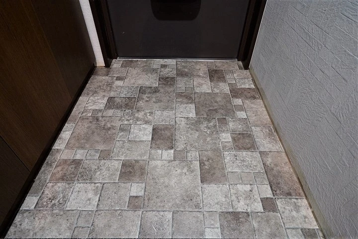 玄関は土足用のクッションフロアで石畳風に!