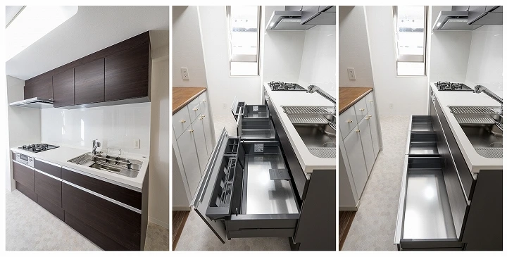 抜群の収納力!キッチンはハイグレードのリクシル「リシェル」