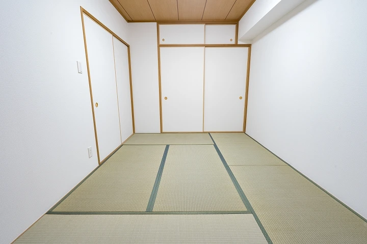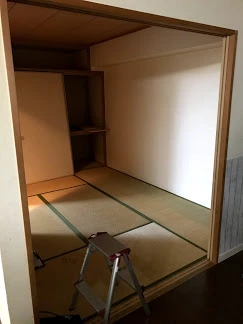 和室は、畳の表替えを行い、雰囲気を一新しました。なお、襖や押入れの建具もクロスで仕上げ直しました。