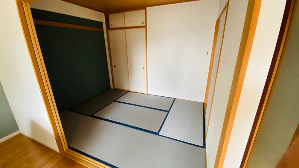 畳の表替えも行いました。ただし、使った素材はよくあるい草ではなく、セキスイというメーカーが出している樹脂素材の畳。樹脂製なので、色あせしにくく、掃除もしやすい。高い耐久性を持つなど高機能の畳になります。