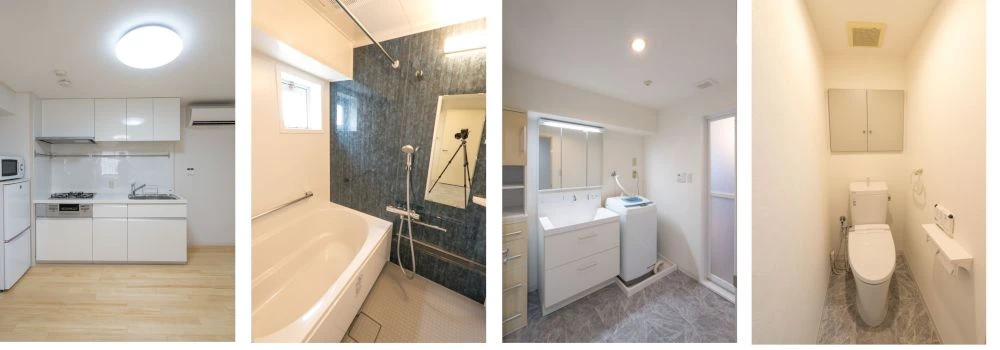 劣化が目立っていた水回りを今回のリフォームですべて一新しました。キッチン、お風呂、洗面所、トイレに加え、給湯器も新しくしています。一度にリフォームを行うことでトータルの時間と費用が節約でき効率的です。
