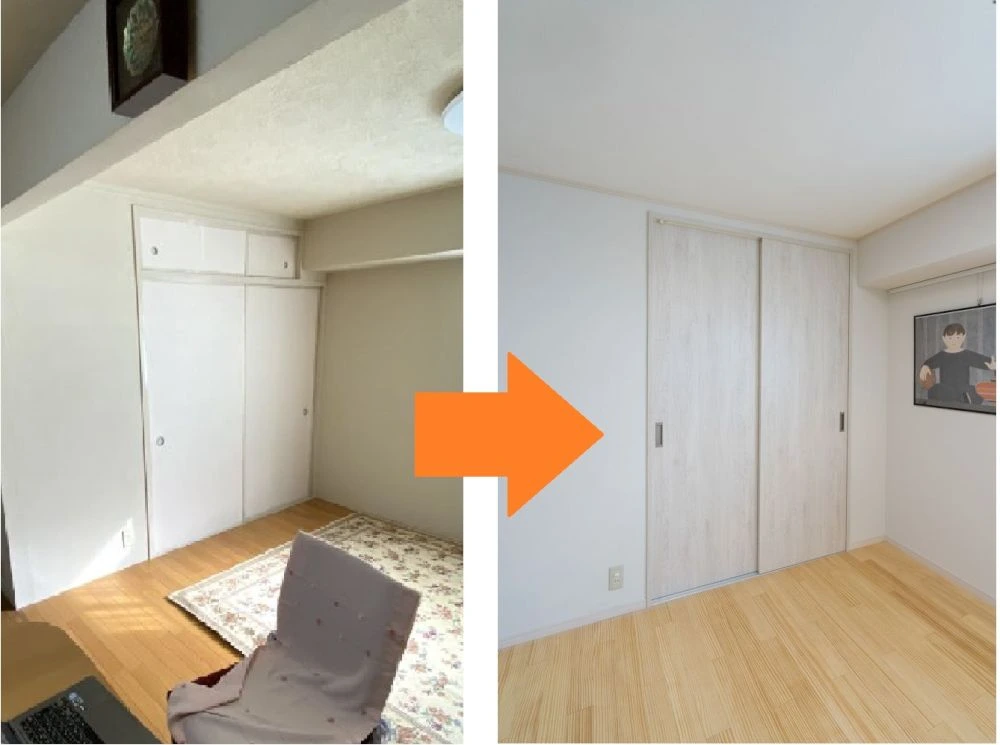 モノを出し入れしにくい天袋をなくしたことで収納力が増え、見た目もスッキリしてよりインテリアになじんでいます。