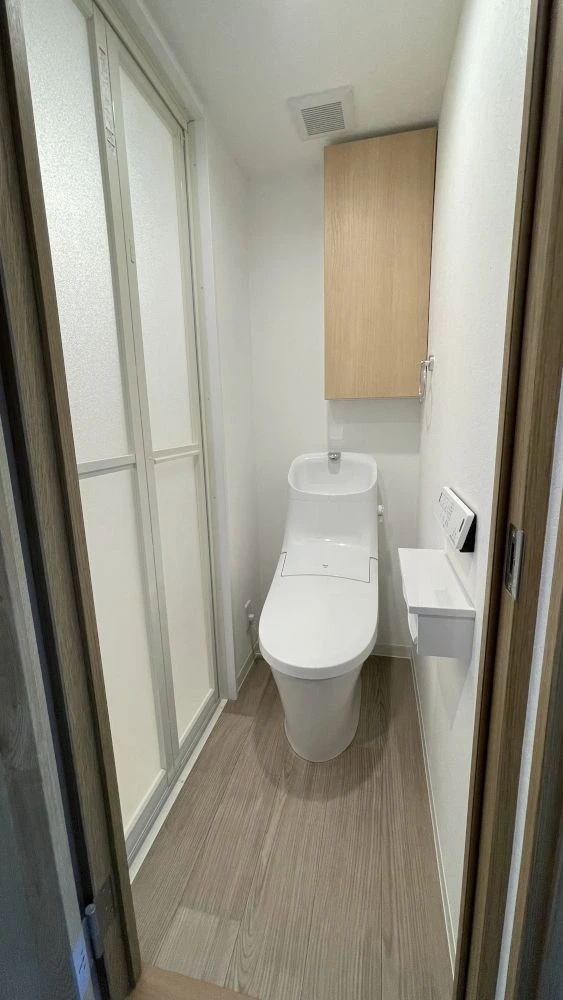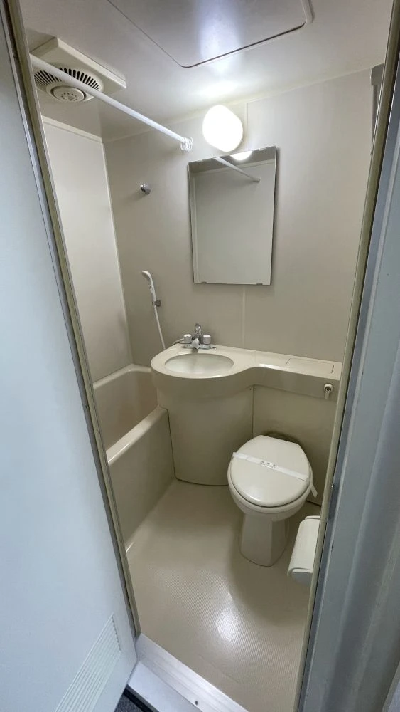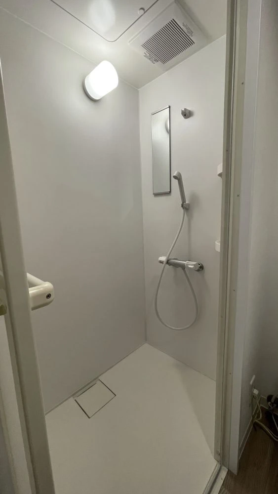水回りも設備を一新しました。特に、出入り口をトイレ側に設けて3点ユニットバスをシャワールームとトイレに分離した点がユニークです。