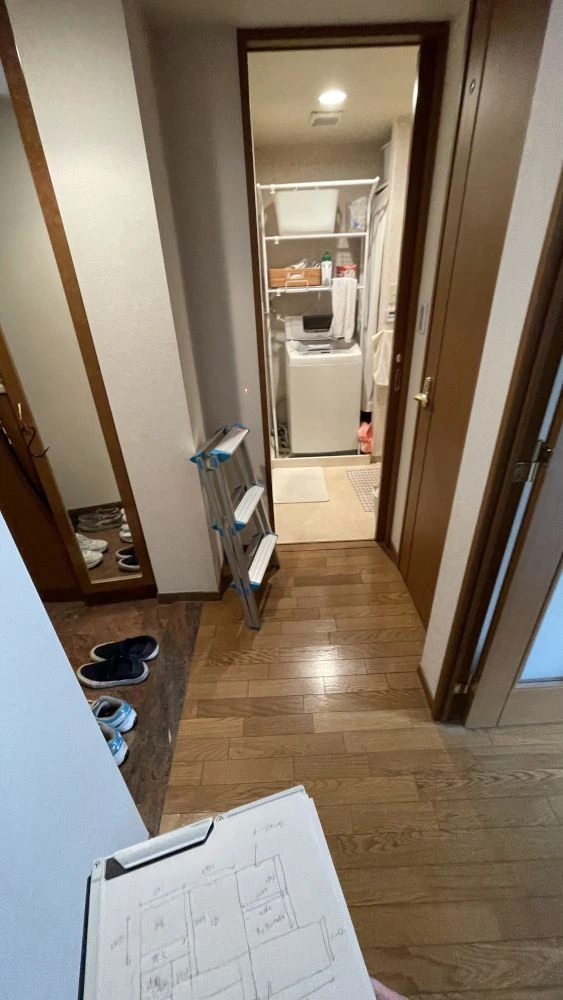 ・洗面所垂れ壁撤去、洗濯パン移設