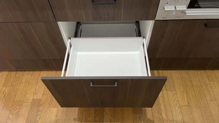 最新のシステムキッチンでは、引き出し式収納が人気です。奥のものが楽に出し入れできるため収納の効率がアップし、古いキッチンほど収納スペースを必要としません。