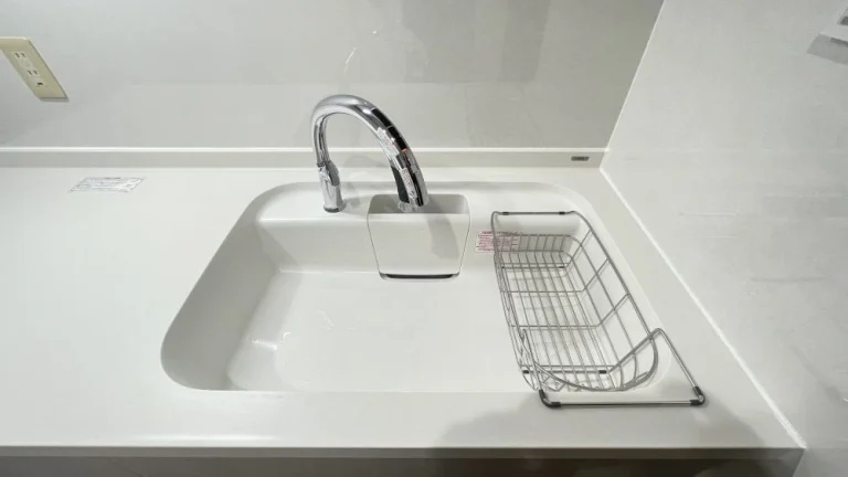 人造大理石のワークトップとシンクで、清潔感があって明るいキッチンになりました。