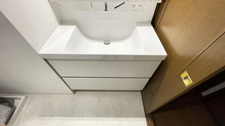 新しいリクシルの洗面台は、引き出し式収納に。収納スペースを奥まで効率的に利用でき、モノがすっきり片付きます。
