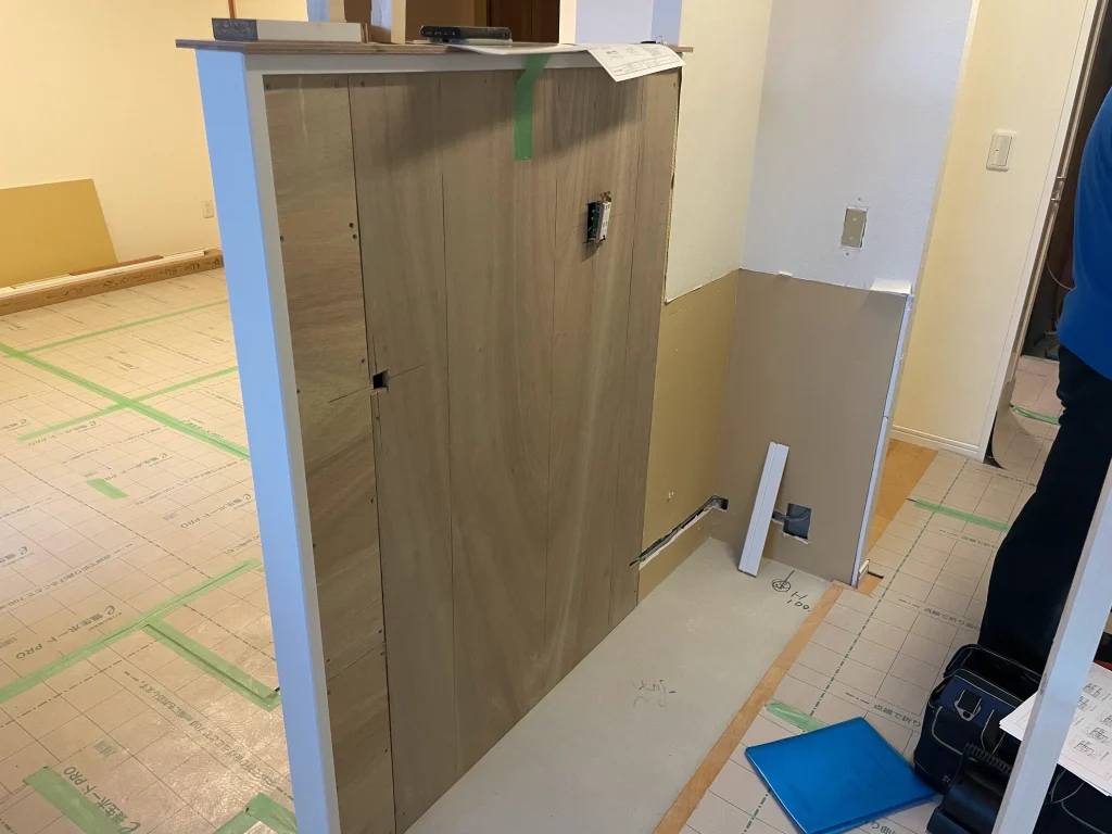 ※カウンター上の家電が隠れるよう、腰壁を造作