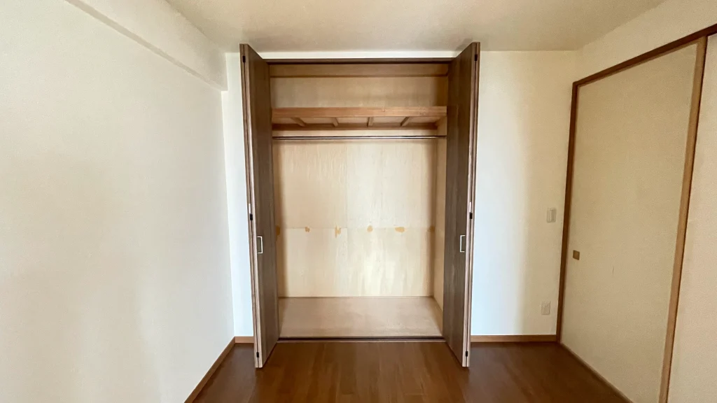 押入れはハンガーポールを入れて使い勝手のよいクローゼットに改修しました。収納建具も洋風のものに入れ替えています。