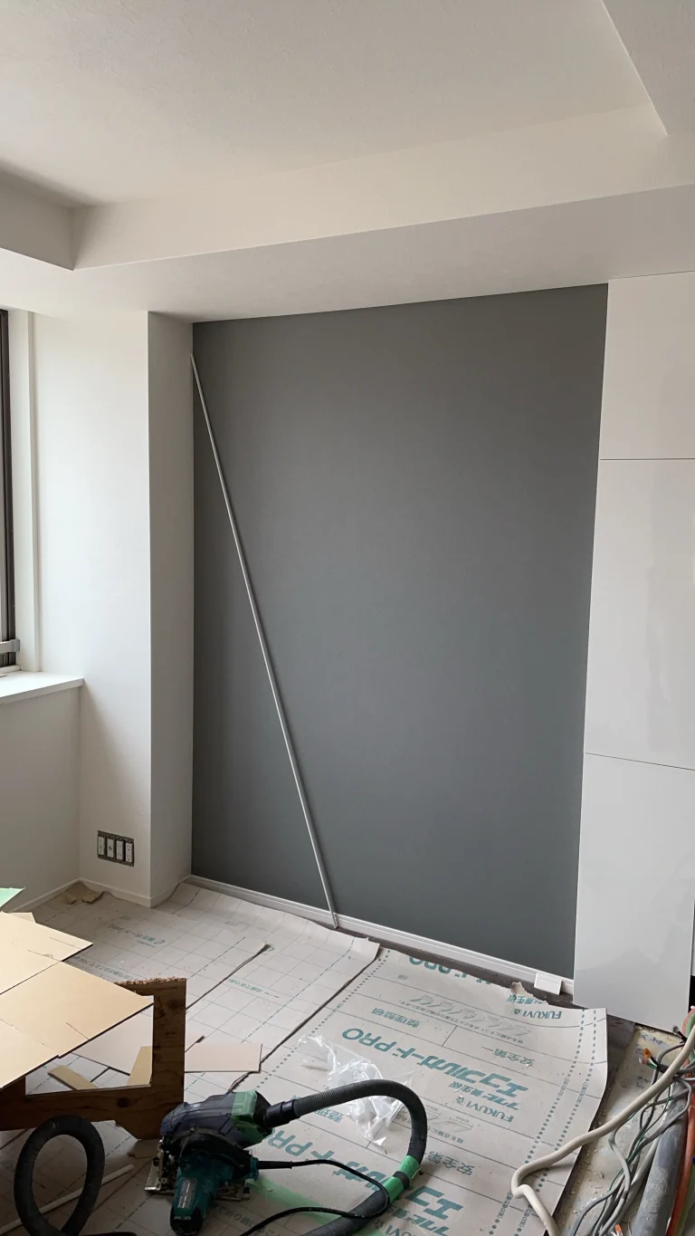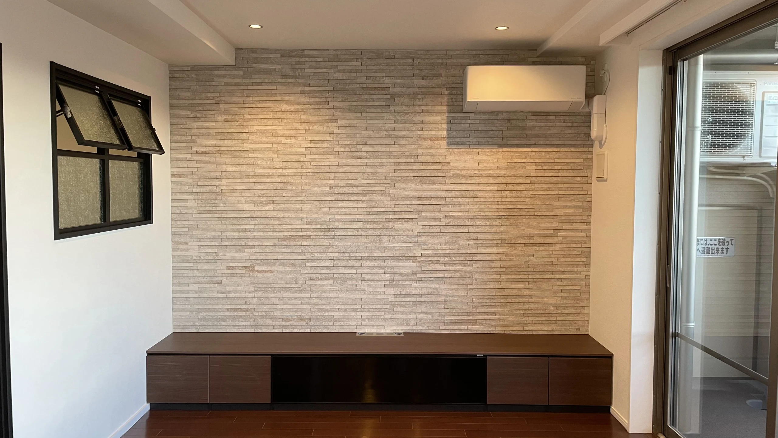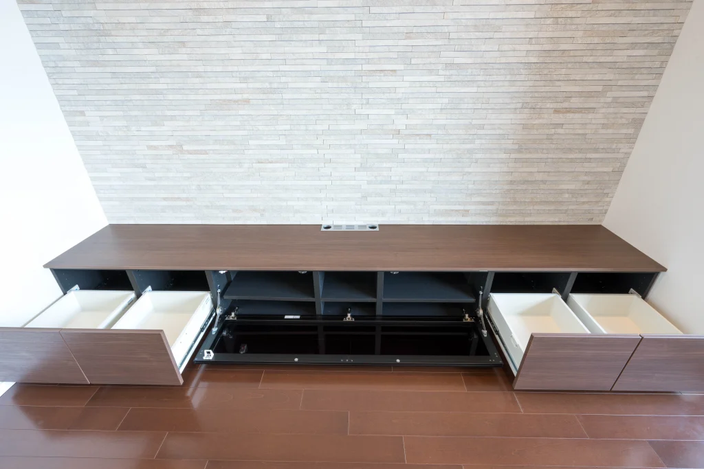 テレビを置くローボードの設置も行いました。フローリングのカラーとマッチする色調で統一感があります。
