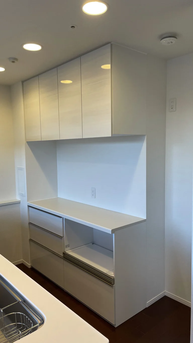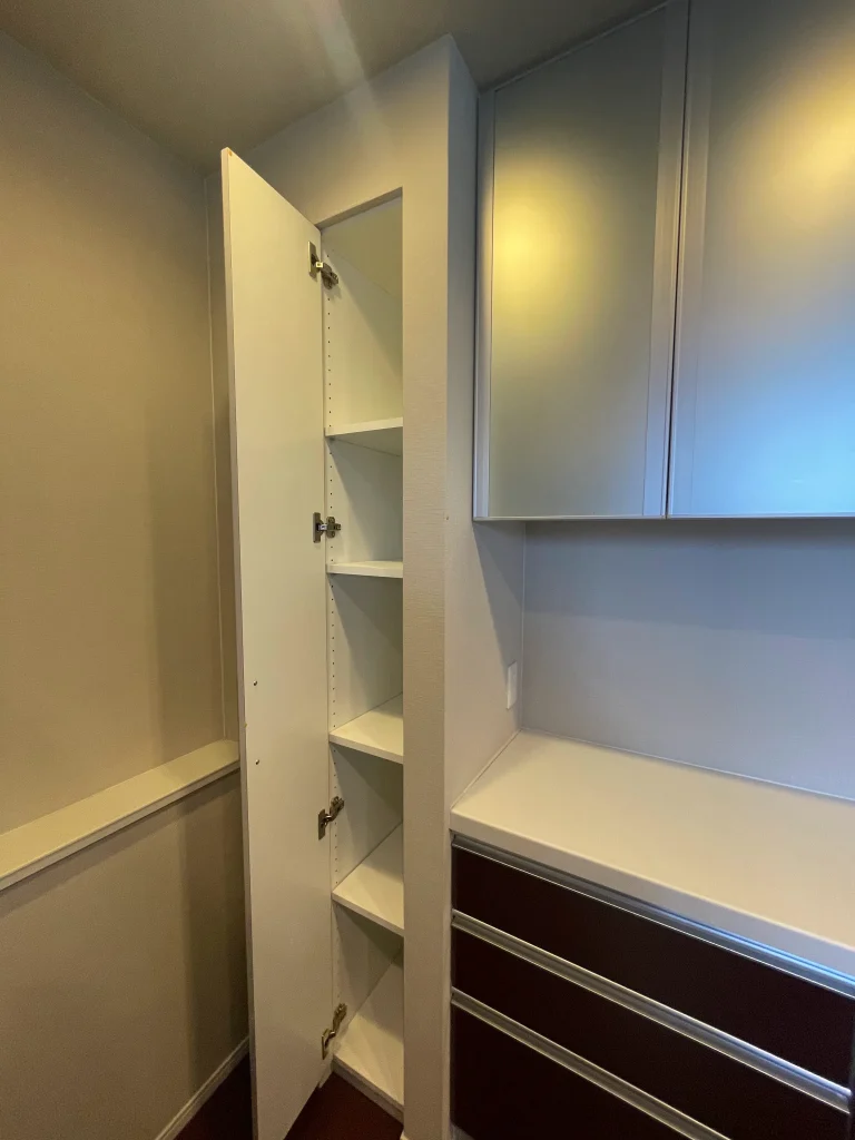 パントリーの移設でキッチンには150cm幅のカップボードが設置でき、キッチンもパントリーも使いやすくなったとお喜びいただきました。