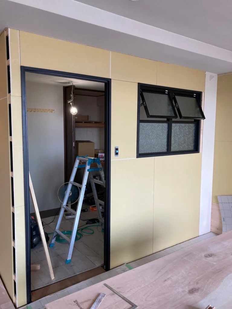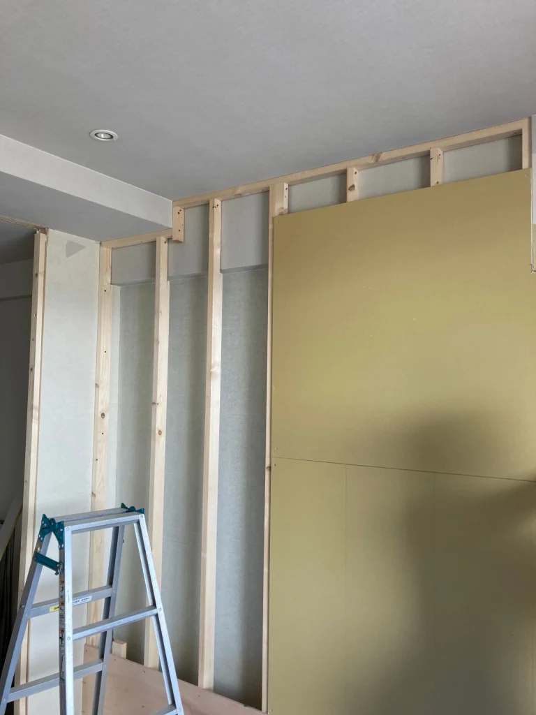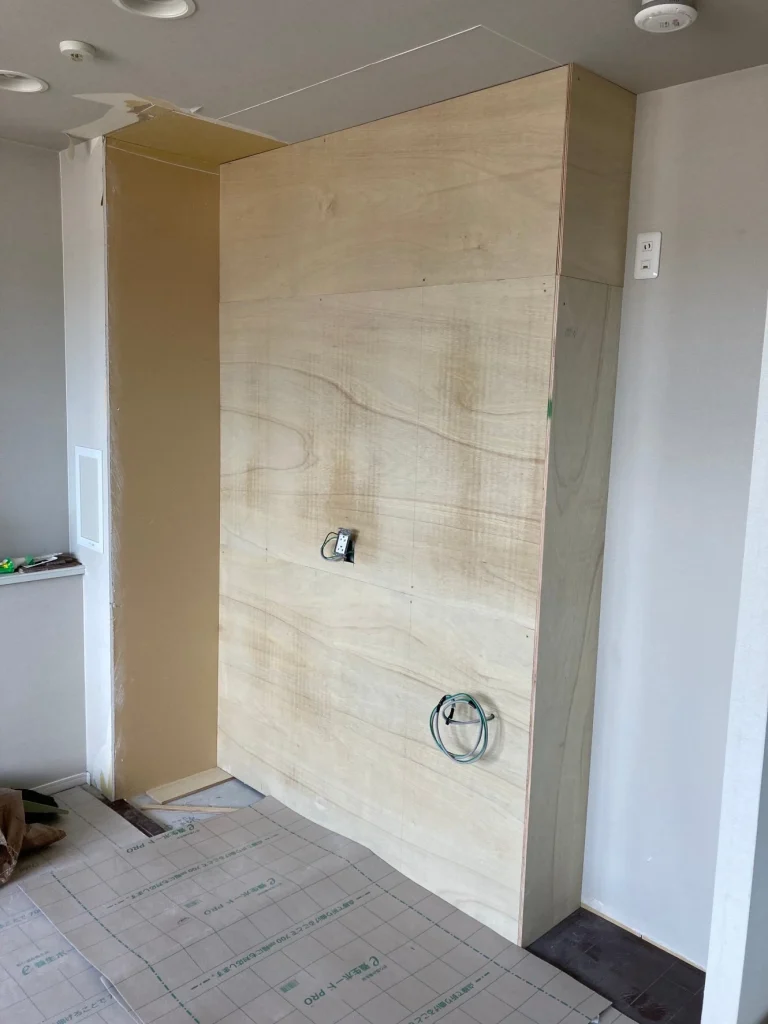 壁を前に出して平坦にし、エコカラットで仕上げました。