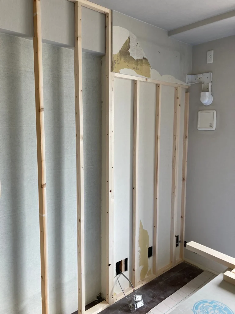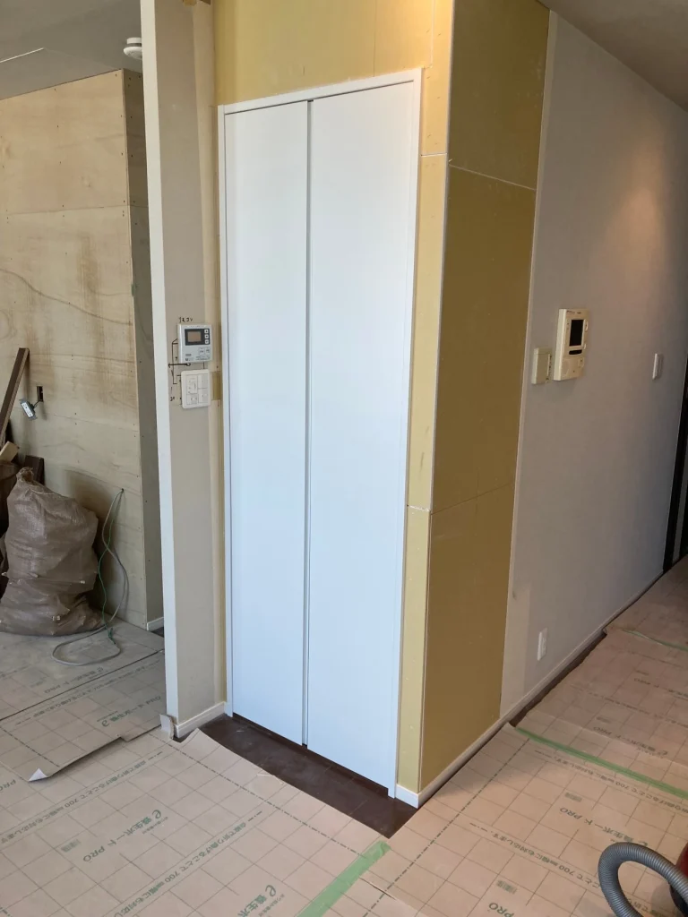 キッチン奥にあったパントリーは、壁を造作してキッチン入口側に移設。パントリーの収納力が格段に増えました。