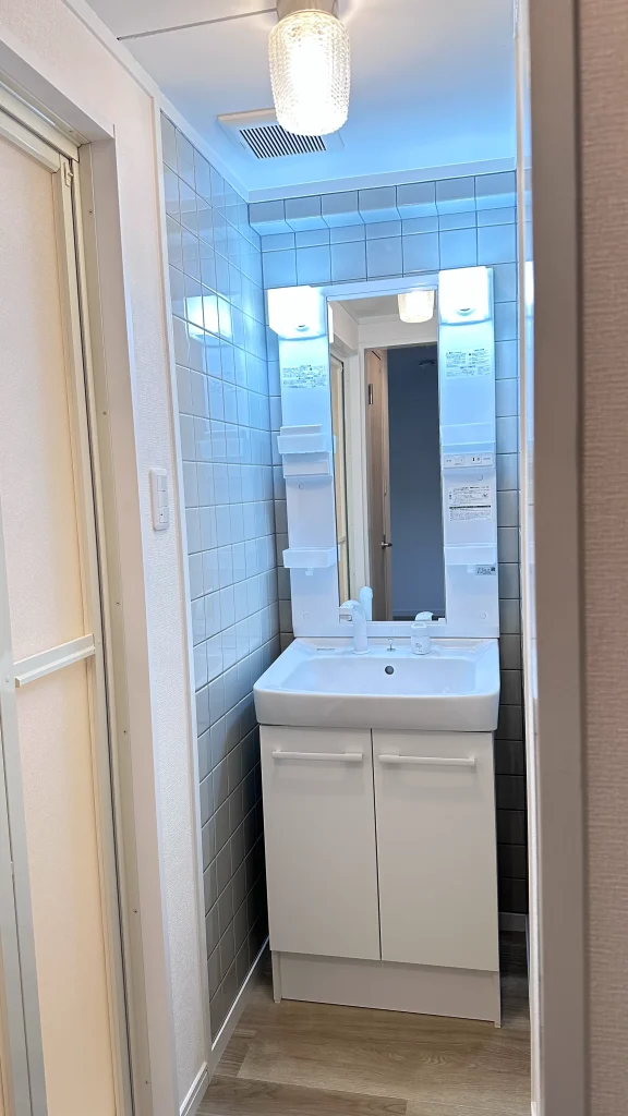 その他、ユニットバスルームは1216サイズ。洗面台には同じくリクシルの「オフト」を採用。賃貸とは思えない上質な水回りとなりました。