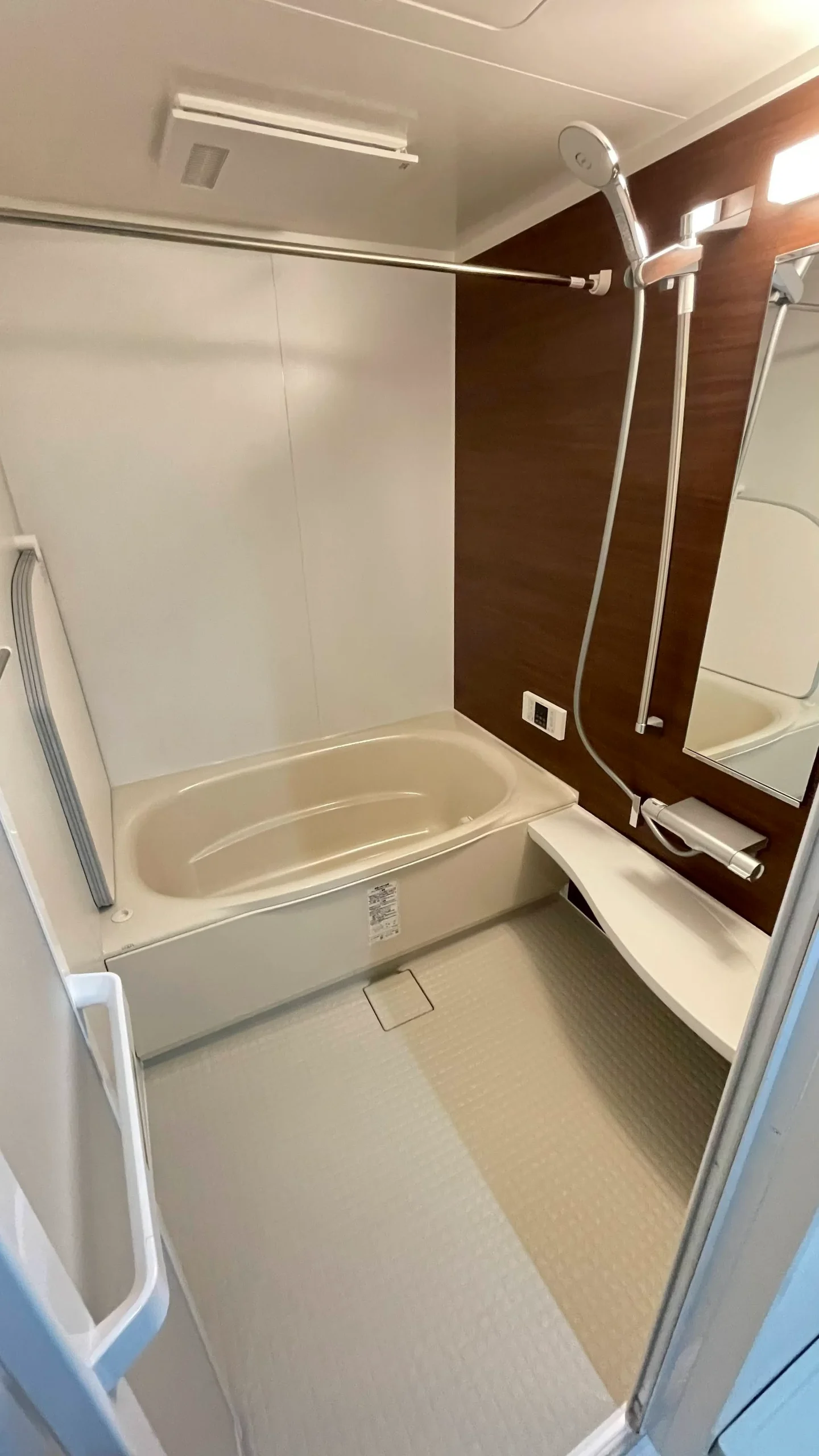 「リノビオ」の高断熱浴槽はお湯が冷めにくい優れもの。また、換気乾燥暖房機も設置され、冬でも温かくゆったりとしたバスタイムを楽しめることでしょう。